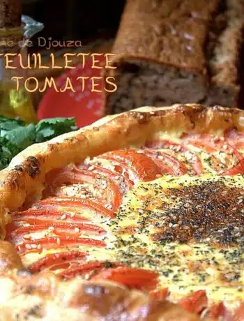Recette tarte tomates mozzarella à la pâte feuilletée Voici une tarte aux tomates et fromage que j’avais préparée pour le dernier « repas des voisins », une quiche tomates mozzarella à……