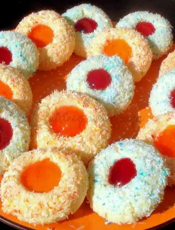 Essayez ces délicieux sablés à la noix de coco colorée et confiture ! Faciles à préparer, ces biscuits égayeront vos goûters avec leurs belles couleurs et leur saveur exotique.……